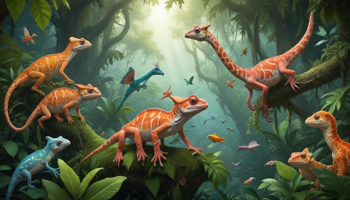 - Camaleão muda cor em 20 segundos: Usa 7 camadas de pele cromatóforos para camuflagem perfeita, caça ou fuga.